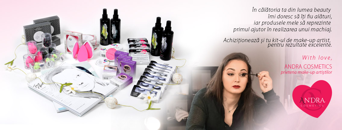 La make-up artisti si la nevoile lor m-am gandit si cand am inceput sa aduc produse si ustensile de beauty in Romania. Voiam sa fac in asa fel incat produsele care intra sub numele #AndraCosmetics sa fie cu personalitate, sa se evidentieze intr-o trusa de make-up, sa fie indispensabile. Toti make-up artistii au o trusa mare cu toate produsele si una mica, indispensabila, un short list fara de care nu pleaca nicaieri. Ei bine, exact pe lista asta voiam sa fie si produsele mele. Treptat am strans sub aceeasi umbrela astfel de produse si le-am asezat in asa fel incat sa reprezinta un kit de ajutor pentru make-up artisti. Iata cum arata kit-ul Andra Cosmetics: