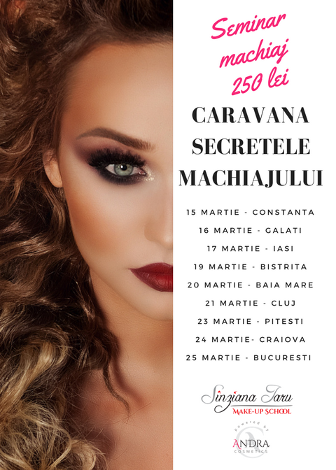 Biletul la seminar il puteti cumpara de aici: http://www.andracosmetics.ro/shop/cursuri-makeup/caravana-secretele-machiajului-2018/