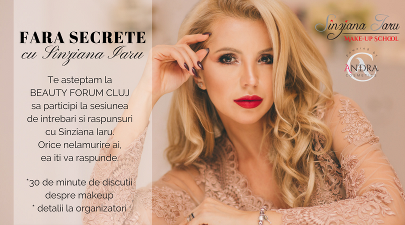 De doi ani particip la minunatul targ Beauty Forum Cluj, dar pana acum nu am mers niciodata eu personal. Anul acesta a venit timpul sa ma intorc in interesantul oras si sa intalnesc live toti oamenii faini de acolo, pasionati de make-up si frumos. Asa ca, make-up artisti din Cluj, atentie, vine Andra. Andra Cosmetics.