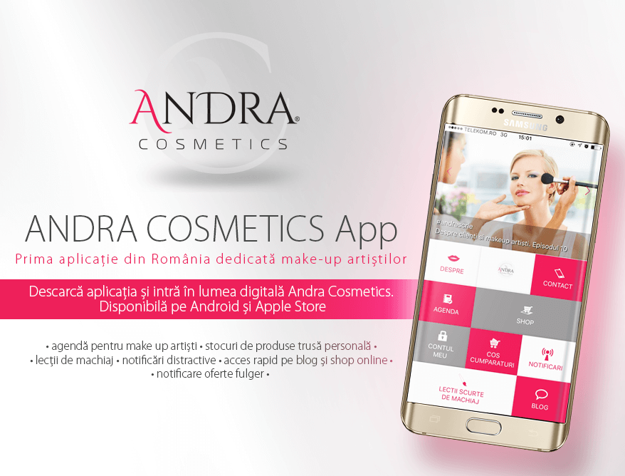 Cam 4 luni am asteptat sa va dau aceasta veste. De fapt, mai mult de 4 luni, caci primul gând s-a concretizat in octombrie, o toamna benefica, in care impreuna cu echipa mea si Sinziana Iaru am luat si decizia sa facem Caravana Together for beauty,  Andra’s Christmas Sales Party si alte proiecte de care veti auzi curand. Deci, din octombrie de cand am pus prima idee pe hartie,  am lucrat intens, am cercetat piata, cateva echipe  si pana la urma am ajuns acolo unde am visat, sa lansez PRIMA APLICATIE DIN ROMANIA DEDICATA MAKE-UP ARTISTILOR.